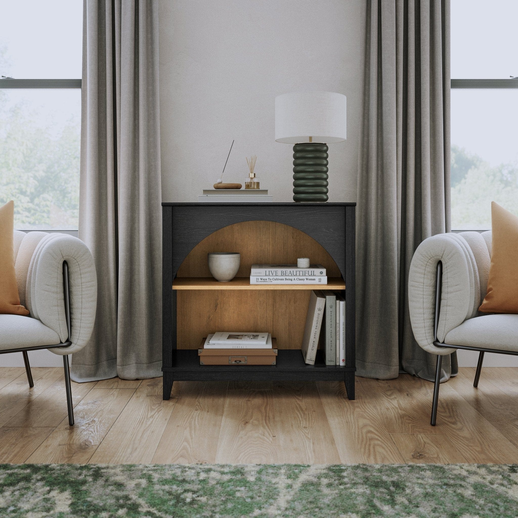 Stylish arched bookcase with adjustable shelf. Black Oak/Natural Oak or Natural Oak finish.
